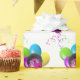 Farbenfrohe Geburtstagsballons mit knackigem Haar und Gläsern auf weißem Hintergrund.