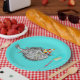 Kreative Teller zum Geburtstag für Fischer mit lustigen Fischen, die einen Geburtstagswunsch machen.