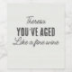 Diese Weinetiketten sind lustig und süß. Diese Etiketten lauten "Du hast wie ein guter Wein gealtert" mit einem Spot, um einen Namen hinzuzufügen. Diese sind perfekt, um Ihren Lieben Geburtstage zu feiern!