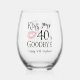 Der sonnige Geburtstag Küsst dein Jahrzehnt Auf Wiedersehen Weinglas. Feiern Sie einen Geburtstag, der ein neues Jahrzehnt beginnt mit diesem lustigen, personalisierten, stemlosen Weinglas-Geschenk mit einem bearbeitbaren modernen Typografie-Design für das Sprichwort KISS YOUR DECADE GOODBYE (das Beispiel zeigt 40 für einen 50. Geburtstag) mit Ihrem eigenen Text. ÄNDERUNGEN: Der personalisierte Text Schriftart Stil, Farbe, Größe und Platzierung sowie die Grafik- und Hintergrundfarben können geändert werden. HILFE: Für Hilfe bei der Modifikation oder Personalisierung des Designs, bei Farbänderungen, bei der Übertragung des Designs auf ein anderes Produkt oder bei der Koordination von Gegenständen wenden Sie sich bitte an den Designer, BEVOR Sie über Zazzle Chat oder makeitaboutyoustore@gmail.com bestellen.