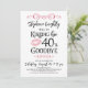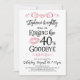 Der sonnige Geburtstag küsst ihre Dekade Auf Wiedersehen Party Einladung. Wir laden Sie ein, einen Meilenstein Geburtstag zu feiern, der ein neues Jahrzehnt mit dieser Einladung beginnt, die ein bearbeitbares, modernes Typografie-Design für NAME WIRD KISSING HER DECADE GOODBYE (gezeigt mit 40ern für einen 50ten Geburtstag in Ihrer Wahl der Farben für den Text, Grafik und/oder Hintergrund (in schwarz und rosa auf weiß). HILFE: Wenn Sie Hilfe bei der Änderung oder Personalisierung des Designs, der Farbänderung, der Größenänderung, der Übertragung des Designs auf ein anderes Produkt oder der Konvertierung in eine Download-Datei benötigen, wenden Sie sich bitte an den Designer, BEVOR er die Bestellung über die Registerkarte Zazzle Chat MESSAGE unten durchführen kann, oder senden Sie eine E-Mail an makeitaboutyoustore@gmail.com.