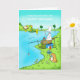 Das ist eine lustige Angelkarte, die ich sicher für alle Fischer zum Geburtstag ideal finde, mit Duncan versucht einen Fisch zu fangen, aber der Fisch hat gerade sein Sandwich genommen, von dem er nur einen Biss genommen hat, und die fette Katze frisst die Fische, die springen, um den Köder zu bekommen, der aus der Köderbox entkommen ist.