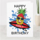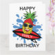 Funny surfen Ananas Design mit Text Happy Birthday und ein Name Template. Klicken Sie auf Personalisieren, den Geburtstagstext bearbeiten oder löschen und einen Namen hinzufügen. Bearbeiten Sie den Text auf der Innenseite nach Ihren Wünschen.
