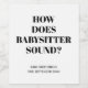 Eine niedliche, einzigartige Art, ein Baby anzukündigen, ist unterwegs! Set auf weißem Hintergrund lautet die große schwarze Typografie "Wie klingt Babysitter?!". Darunter können Sie in der einfachen modernen schwarzen Typografie Ihren Familiennamen und das Fälligkeitsdatum hinzufügen.