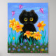 Funny Black Cat Art Spring Daffodils Creationarts Poster