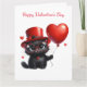 Funny Black Cat mit Balloons Valentine's Day Card