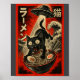 Funny Black Cat Ramen Alien Ufo Abduction Japanese Poster