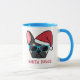 Genießen Sie das Urlaubserlebnis mit dieser frenchie Santa Paws Kaffee-Tasse. Diese hübsche Tasse ist mit einem schwarz-bräunlichen französischen Bulldoggen mit roter Weihnachtsmannmütze und einer stilvollen blauen Sonnenbrille ausgestattet. Es ist der perfekte Weg, um den Urlaubsgeist mit jedem Schluck zu genießen.