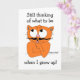 Diese lustige Begrüßungskarte zeigt die Cartoon-Schnurrbartkatze Señor Gato™ in einer sehr durchdachten Pose zusammen mit dem Sprichwort "Denke immer noch daran, was ich sein soll, wenn ich groß bin!" Die Karte ist innen leer, um Ihre eigene Nachricht zu schreiben!
