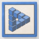 Servieren Sie Ihren Drink auf diesem Kalkstein-Untersetzer mit dieser coolen unmöglichen Dreieck-Konstruktion. Das berühmt unmögliche Baudreieck in Form von Würfeln. Ein unmögliches Dreieck in Form von blauen Blöcken. Auch bekannt als unmögliche Transformation oder unmögliche Konstruktion. Sie werden vielleicht im Internet finden, aber ich denke, meine ist sehr gut ausgeführt.