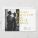 Funny speichern Sie die Termine für Ihre kommende Hochzeit in unserem Booze, Essen und schlechten Tanz bewegt Gold Design. Passen Sie diese Hochzeit speichern Sie das Datum mit Ihrem Foto (sieht großartig mit Schwarz-Weiß-Foto). Passen Sie die Erholung der Ankündigung mit Ihren Hochzeitsdetails an.