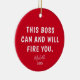 Zeigen Sie Ihrem Chef etwas Spaß mit diesem Funny Boss Red Personalisierten Jahr Weihnachtsschmuck Keramik. Es ist auf beiden Seiten mit einem lustigen Sprichwort entworfen, "dieser Chef kann und wird euch feuern" in fett weißer Schrift auf dunkelrotem Hintergrund gefolgt von Namen in trendigen handgeschriebenen Schrift und benutzerdefinierten Jahr. Perfekte Geschenkidee für jeden Anlass. Klicken Sie auf die Option Personalisieren und folgen Sie den Anweisungen.