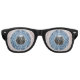 Digitale Kunst, die wie wackelige blutschneeblaue Augen aussieht, die die Felgen einer stilvollen, lustigen Brille füllen.