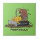 Dieser Stier bewegt sich auf seiner eigenen Erde und treibt einen Bulldozer im lustigen Cartoon-Stil.