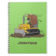 Dieser Stier bewegt sich auf seiner eigenen Erde und treibt einen Bulldozer im lustigen Cartoon-Stil.