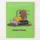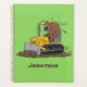 Dieser Stier bewegt sich auf seiner eigenen Erde und treibt einen Bulldozer im lustigen Cartoon-Stil.