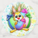 Funny and Cute Easter Bunny Cartoon Character biting a decorated Egg. Original Digital Art Copyright BluedarkArt.