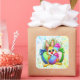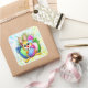 Funny Bunny biting an Easter Egg Quadratischer Aufkleber