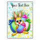 Funny and Cute Easter Bunny Cartoon Character biting a decorated Egg. Original Digital Art Copyright BluedarkArt.