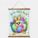 Funny Bunny biting an Easter Egg Wandteppich Mit Holzrahmen