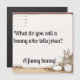 "Wie nennst du einen Hase, der Witze erzählt? Ein lustiger Hase! Dieser Witz kann von dir geändert werden. Brauner Hase, geschnitten und mit Milch gefüllte Schüssel. Kaffee gefärbt.
