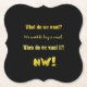 A witty, minimalist parody of a protest chant that humorously nods to a vintage television game show, using bold yellow text on a black background to deliver a punchline with perfect comedic timing.