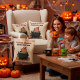 Dekorieren Sie Ihre Zuhause mit unheimlichem Charme und gemütlichem Spaß! Dieses Kissen zeigt eine Capybara Hexe entspannen in einem Kessel umgeben von Kürbissen und Fledermäusen. Ein perfekter Halloween-Akzent für Sofas, Betten und festliches Dekor.