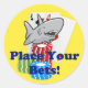 Funny Card Shark Gambling Cartoon mit Poker Chips Runder Aufkleber