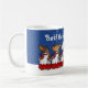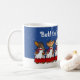A funny dog choir on a Christmas themed mug. Use "Personalize this template" to change the "Bark! the herald angels sing!" text, and create a unique, personalized xmas gift. Featuring six toy dog breeds singing carols in a doggy choir, including a Dachshund, Yorkie, Bichon Frise, Chihuahua, Pomeranian and a Pug.