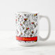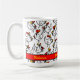 Diese personalisierte Kaffee-Tasse ist das ideale Geschenk für jemanden, der Hühner mag! Es zeigt ein Muster von komisch gezeichnet Cartoon-Hühnern in Rot, Gelb, Orange und Schwarz auf weißem Hintergrund. Der bearbeitbare Text erlaubt es Ihnen, ihn mit Namen oder Nachrichten, die Sie wünschen, anzupassen.