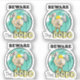 Eine lustige Cartoon-Illustration eines Dodo. Das ist der Nationalvogel von Mauritius. Der Dodo ist ein einzigartiger, fliegenloser Vogel. Der lustige Text liest, hüte dich vor dem Dodo. Der Vogel liegt auf einer tropischen Insel mit Palmen.