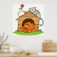 Funny Cartoon Dog Cat and Chicken on Doghouse Poster