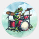 Funny Cartoon Frog spielt Trommeln Runder Aufkleber