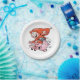 Funny Cartoon Gnome Riding Flying Pig Pappteller