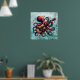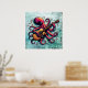 Funny Cartoon Comic Buch Stil Oktopus spielen eine Gitarre ai Kunst. Türkis abstrakter Hintergrund.
