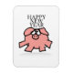 Funny Cartoon Illustration eines kleinen rosa Schweins mit "Happy New Year" (nicht anpassbar) auf transparentem Hintergrund. Design auf rechteckigen Foto-Magneten. Verfügbar auf Rundmagnet. Weitere Modelle mit lustigen Cartoon-Illustrationen von Schweinen sind erhältlich. Passende Kleidung, Büroartikel, Handwerksprodukte und mehr... Spaß für das chinesische Neujahr des Schweins 2019. — "Das Schwein (豬) ist das zwölfte und letzte Zeichen der Irdischen Branchen (亥). Im kontinuierlichen Sexagenenzyklus entspricht jedes zwölfte Jahr Hai und wird gemeinhin als "Jahr des Schweins" (豬 年) bezeichnet. Es gibt fünf Arten von Schweinen, die nach den chinesischen Elementen benannt sind. In der Reihenfolge sind sie: Metall, Wasser, Holz, Feuer und Erde. Im japanischen Zodiac und im tibetischen Zodiac wird das Schwein durch das Schwein ersetzt[1]. Im Dai-Zodiac wird das Schwein durch den Elefanten ersetzt. Im Zodiac Gurung wird das Schwein durch das Hirsch ersetzt. (..) Man kann sagen, dass Personen, die innerhalb dieser Zeitbereiche geboren sind, im "Jahr des Schweins" geboren waren, und dabei auch das folgende Elementarzeichen tragen: 10. Februar 1923 - 29. Januar 1924 = Wasserschwein, 4. Februar 1935 - 23. Januar 1936 = Holzschwein, 2. Januar 19 47 - 9. Februar 1948 = Feuerschwein, 8. Februar 1959 - 27. Januar 1960 = Erdschweine, 27. Januar 1971 - 14. Februar 1972 = Metallschwein, 13. Februar 1983 - 1. Februar 1984 = Wasserschwein 31. Januar 1995 - 18. Februar 1996 = Holzschwein, 18. Februar 2007 - 6. Februar 2008 = Waldschweine, 5. Februar 2019 - 24. Januar 2020 = Erdschweine, 23. Januar 2031 - 1 20 032 = Metal Pig (...)" Wikipedia