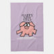 Funny Cartoon Illustration eines kleinen rosa Schweins mit "Happy New Year" (nicht anpassbar) auf transparentem Hintergrund. Design auf Küchenhandtuch mit lila Hintergrund. Andere Modelle sind mit lustigen Cartoon-Illustrationen erhältlich. Passende Büroprodukte, Zuhause-Produkte, Handwerksartikel, Accessoires, Bekleidung und mehr... Spaß für das chinesische Neujahr des Schweins 2019.