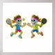 Funny Cartoon Skeletons Playing Padel Tennis – 3D Poster