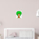 Niedlicher, lustiger Cartoon-Baum mit grünen Blätter, brauner Kofferraum, ein fröhliches Lächeln und große runde Augen.