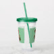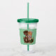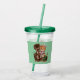 Dieser Acryl-Drink-Trommel mit Stroh und Deckel hat ein lustiges Katzenpaar. Das gelb gestreifte Weibchen teilt ihre Ratten von ihrem Holzkorb mit der braunen männlichen Katze auf einem minzgrünen Hintergrund.