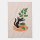 Funny Cat Fig Tree gepunktete Pflanze Hand gezogen Geschirrtuch