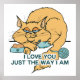 Ich Liebe dich so, wie ich bin. So viel Liebe dir eine Katze. Funny Cat Sprichwort, Parodie zu "I Liebe you just how you are" mit einer fetten Fettkatze in orange / braun mit blauen Spielzeug wie eine Maus, Garnkugel und eine Katzenfutterschale. Fun Cat Design für Katzenbesitzer und Katzenliebhaber.