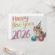 funny cat happy new year Flat Card