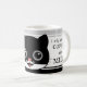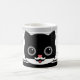 Die Tasse ist eine hübsche, schwarz-weiße Katze mit einem weißen Schnurrbart und einem Cartoon. Purfect für einen Katzenliebhaber, der Kaffee mit Milch trinkt.