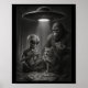 Funny Cat mit Alien und Bigfoot essen Pizza Ufo Poster