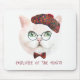 Lady weiße Katze Charakter mit Brille und beret und lustigen "Angestellten des Monats" bearbeitbaren Text. Sie können "den Text mit Ihrem eigenen in der Stelle ersetzen. Machen Sie es zu einem lustigen Geschenk für einen Mitarbeiter oder Freund.