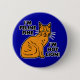 Dieser niedliche Katzenpun-Knopf zeigt ein Cartoon eines orangefarbenen Kätzchens und den originellen, sonnigen Satz: "Ich bin Feline Fine. Ich bin nicht Löwe!" Es ist das perfekte humorvolle Design für den Katzenliebhaber oder die verrückte Katzenfrau (oder Gentleman) in Ihrem Leben. Der blaue Hintergrund ist anpassbar. Es ist auch in unserem Shop für andere Artikel erhältlich.