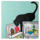 Eine clevere schwarze Katze hilft ihr oder sich selbst zu einem Milchsnack im offenen Kühlschrank. Mein Künstlerleben hat viele Jahre lang Geschichten über Katzen und Katzenleben auf den Handwerksmärkten erschaffen. In dieser Serie von Kunstfliesen kehre ich zu meinen frischen Tischlerfliesen zurück. Meine Liebe von Katzen macht sie zu meinem Lieblingsfach für meine Kunstproduktion.