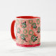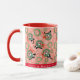 Katzen genießen die Weihnachtsdekoration auf neuartige Weise. Eine Katze, die elegant drapiert ist, oder nicht so elegant in einem Kranz, kommt für jeden, der Katzen kennt, nicht überraschend. Ich entwarf diese lustige Katze und dieses Kranzmuster in einem Poinsettia-Rosa, weil diese Farbe mit einer der traditionellen roten. weißen, grünen Weihnachtsfarben reizend aussieht. Personalisieren Sie diese Tasse mit der Nachricht und dem Namen eines Katzenliebhabers in Ihrem Leben.