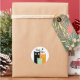 Adorable Rundaufkleber mit drei lustigen Katzen. Einer ist schwarz, der links ist orange, etwas niedriger und rechts von der schwarzen Katze, etwas vorne und eine ist aquamarin, niedriger als die anderen beiden Katzen und vor ihnen stehend. Die einzige Eigenschaft auf den Katzen sind große runde Augen. Über den Katzen steht "danke" in einem eleganten schwarzen Skript und ein kleines schwarzes Pfotenprint.